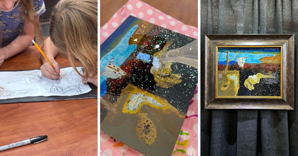 Staying with canvas and acrylics like we did with the Frida artwork, students explored surrealism through melting clocks and dreamlike imagery inspired by the work of Salvador Dalí’s The Persistence of Memory.